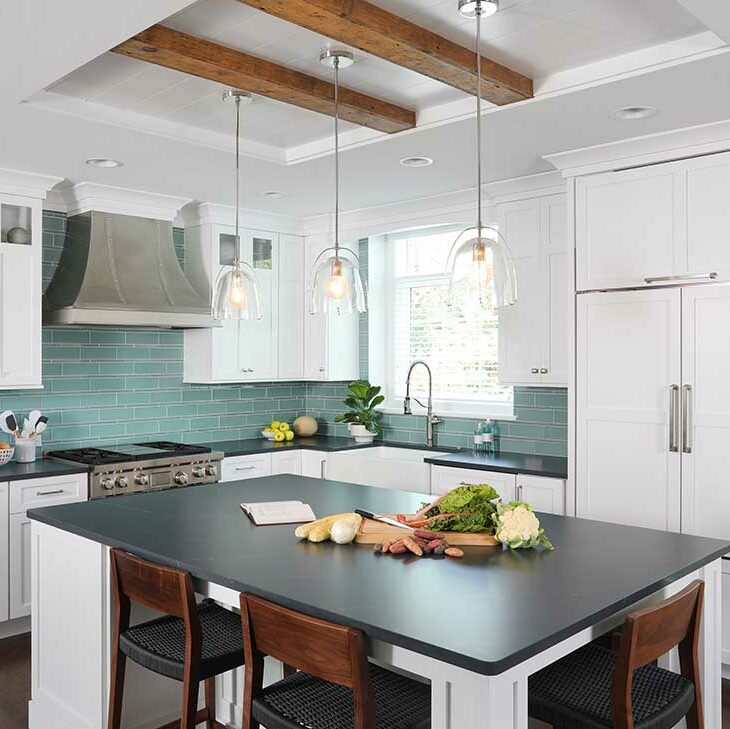 “We were also able to widen and center the doorway from the kitchen to the dining room by relocating necessary HVAC ductwork into another wall,” Added Kathryn. “Eliminating this wall space on the first floor gave them better flow between rooms and a more open floor plan that they desired.”