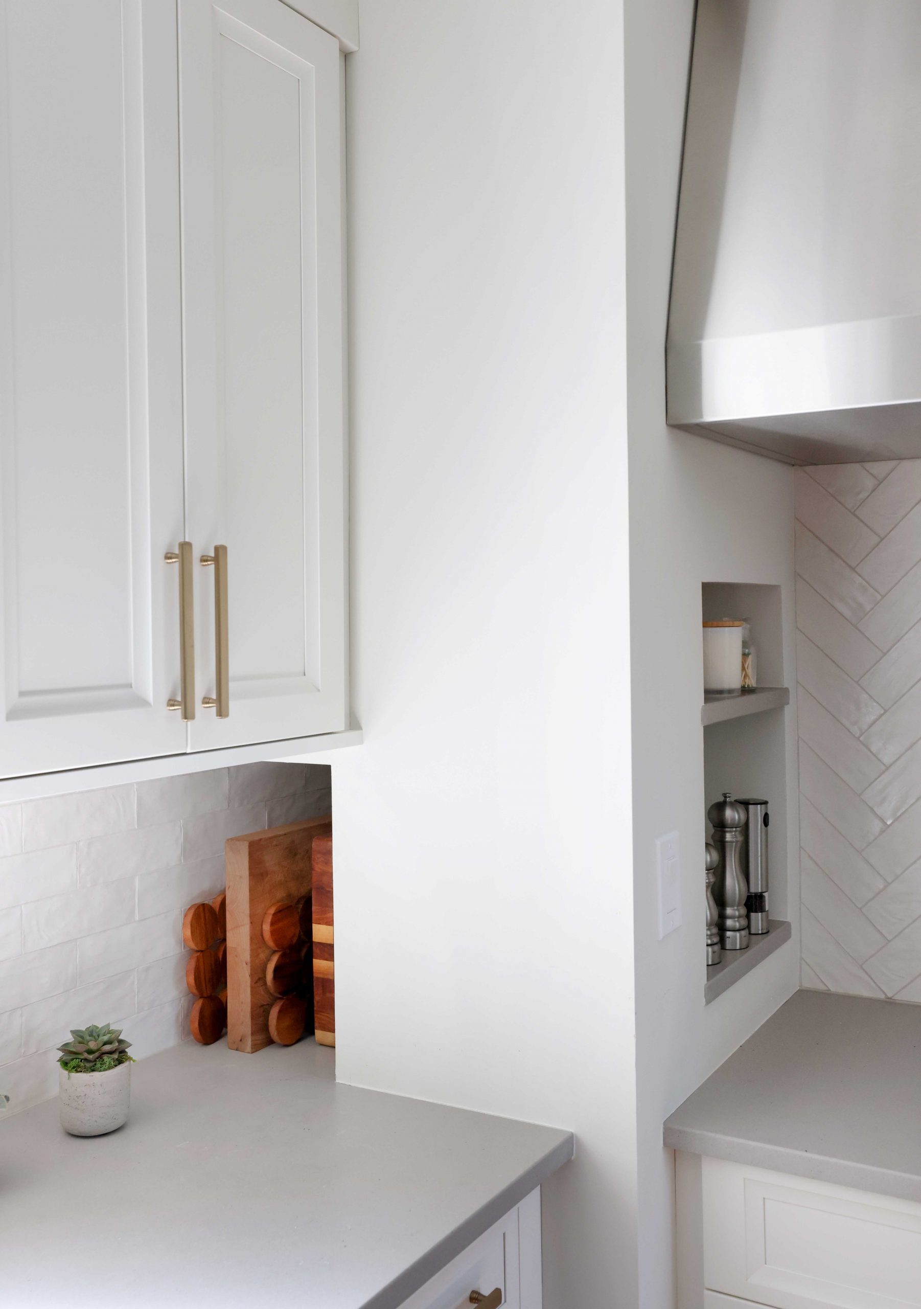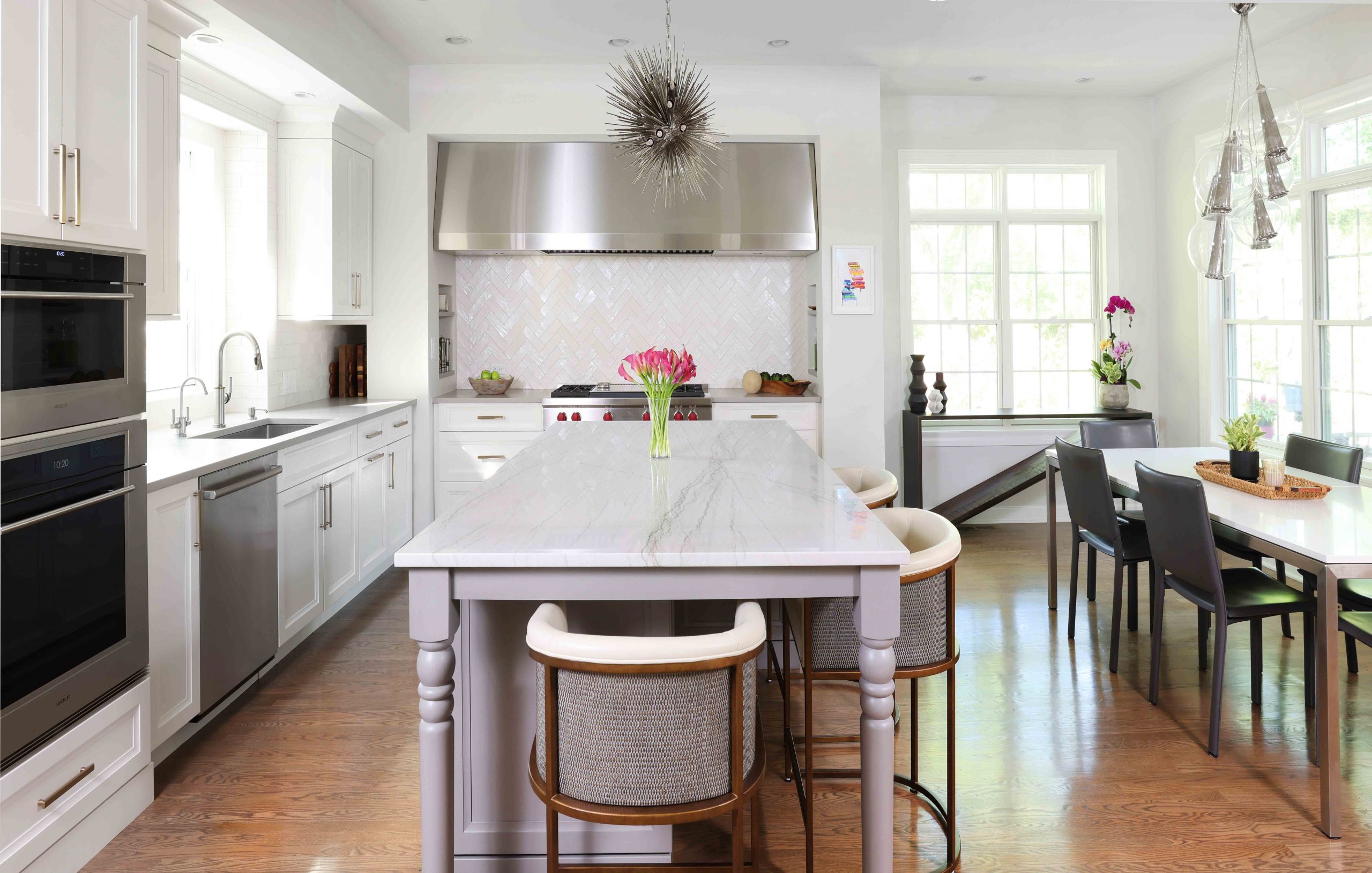 “By doubling the size of their kitchen, this family now has room for casual meals at the oversized island, as well a full dining table for more formal affairs,” says Vince. The overall look is not only fresh and clean but brings a level of sophistication, even down to the nooks and niches that store meal prep essentials, tucked just out of sight.