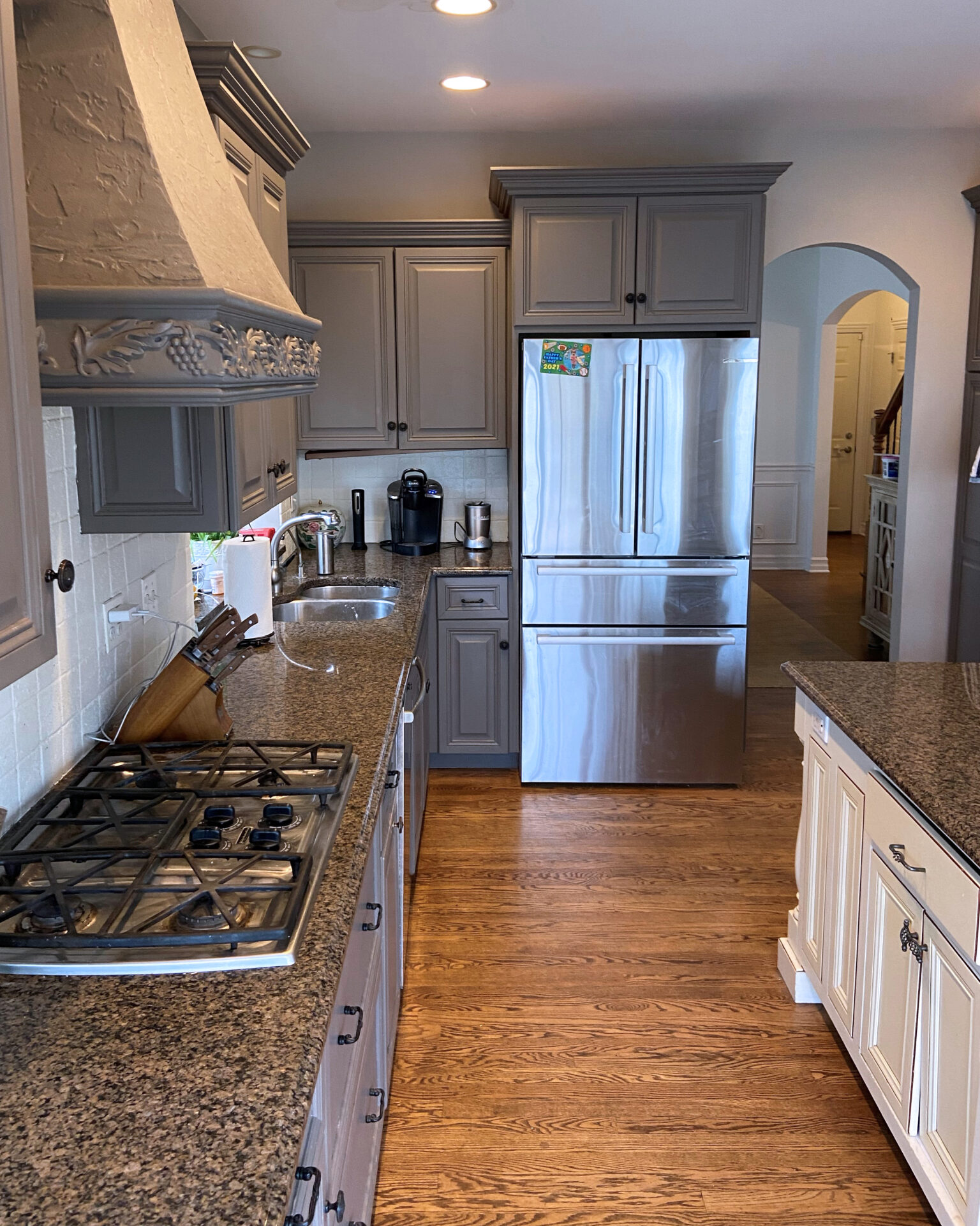 Beyond looking gorgeous, the family needed better flow and function from the space. “It was a little tight, the sink and refrigerator weren’t well positioned, and the island was oddly shaped and lacked storage,” Abby explains.
