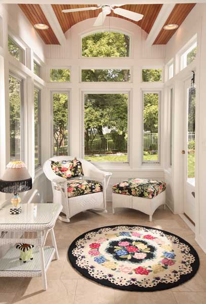 Large windows in this sunroom addition give the homeowners the illusion of an indoor-outdoor space. Overall, the new space provides plenty of natural light and a beautiful view.