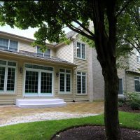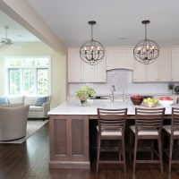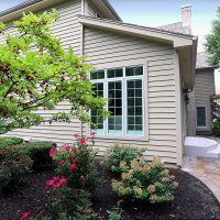 A wall of windows including patio doors give this kitchen addition plenty of natural light and a connection to the outdoor living space. This seamless addition added square footage in the kitchen for a seating and eating area that is perfect for entertaining and family gatherings.