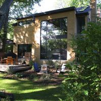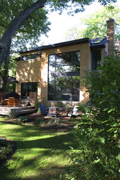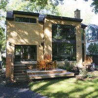 Before the renovation, this 1950’s ranch left much to be desired. Now, its new and unique architecture is extremely eye catching, with a butterfly roof and Mondrian style windows. The bold look continues to the newly remodeled kitchen and the modern living room.