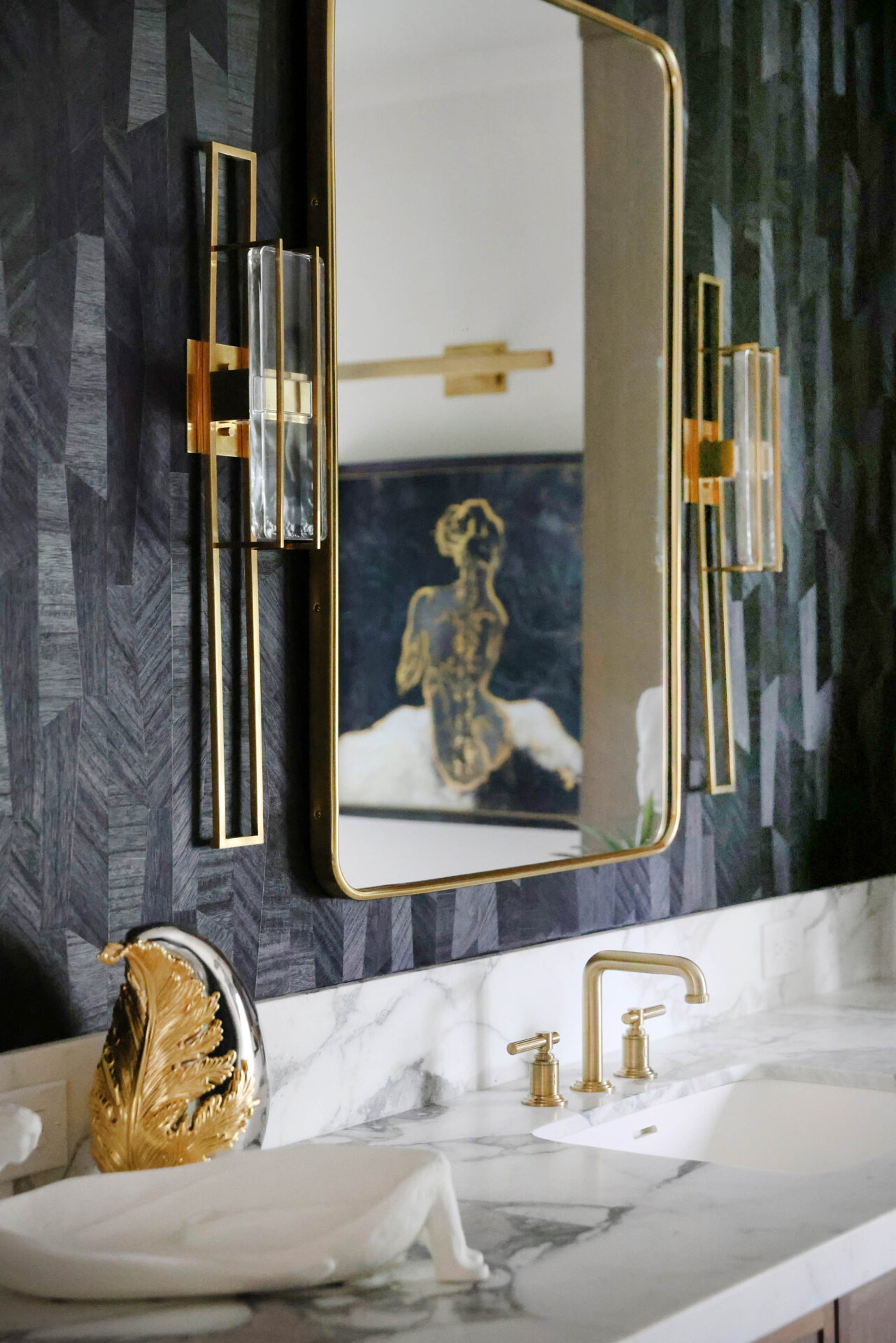“They have very luxurious taste and requested warm colors. We worked with her interior designer, Curly Willow Interiors, to create a look that is very glam, but moody and sophisticated,” Becca says.