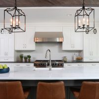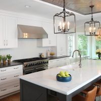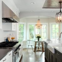 Everybody wants to be in the kitchen, so this kitchen was designed to work for everyone. There’s a well defined work zone for the cook, counter seating at the island for the kids to do their homework, and a beverage station to make entertaining a breeze. The timeless quality of white cabinets pair well with the dark painted finish of the island. A reclaimed wood ceiling above the island has similar finishes incorporated into the refrigerator armoire and beverage station area to tie the whole room together.