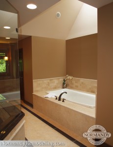 For the perfect follow up to a stressful day or for the makings of a relaxing evening, there’s a beautiful soaking tub under a skylight across from the shower. The whole space was done in neutral, earthy tones to exude a sense of warmth and calmness. Industry peers agree that a spa-like atmosphere was fully achieved in this space, and it received a Remodeling Excellence Award from NARI Chicagoland. Schedule a complimentary, in-home consultation with Leslie today to transform your master bathroom into a spa-like retreat!