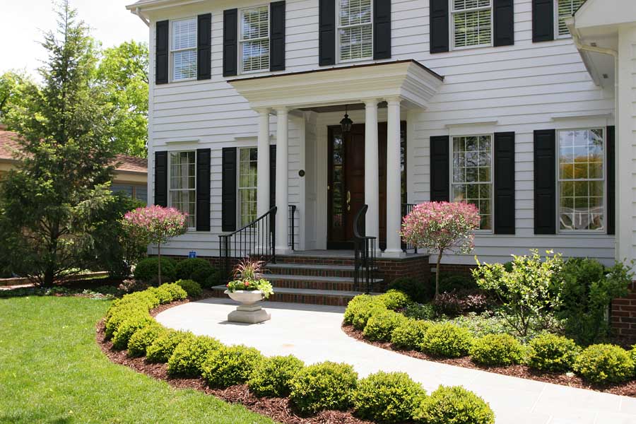 This classic colonial house got an upgrade on its classic look with a new entry and porch, as well as enhancements to other areas of the home’s exterior.